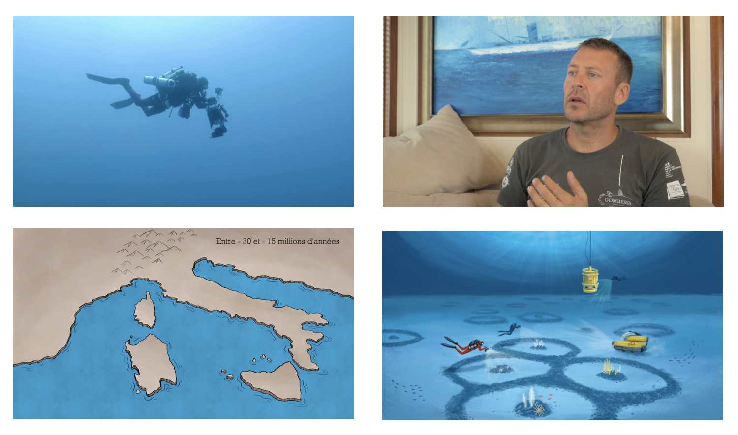 Communication autour de l'expédition gombessa à travers de la vidéo et du dessin. Il s'agit d'une expédition menée sur 3 ans par Laurent Ballesta et son équipe de plongeurs scientifiques d'Andromède Océanologie. Des milliers d'anneaux corralligènes d'une vingtaine de mètres ont été découverts à 120m de fond au large du cap corse. Que font-ils ici ? Comment ont-ils été formés ? De quand datent t'ils ? Quelle est la biodiversité associée ?